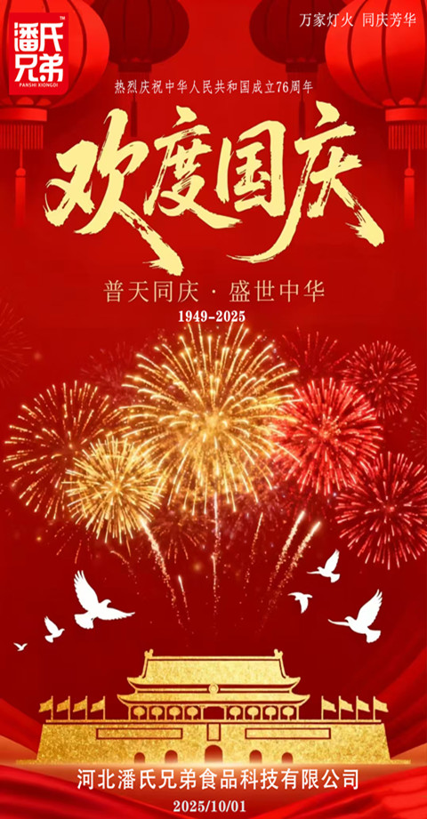 值此国庆佳节,潘氏兄弟公司向各位新老客户与合作伙伴致以最诚挚的问候!