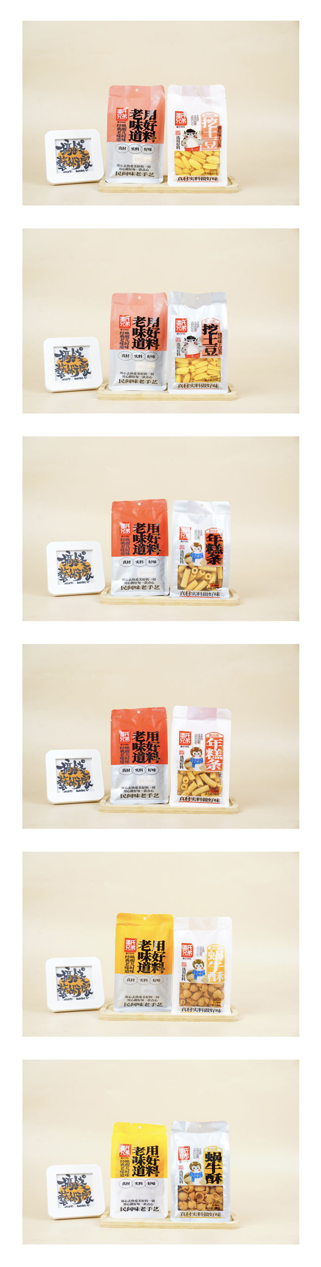从挖土豆的薯香,到猫耳朵的传统,再到蜗牛酥的趣味、年糕条的劲爽、小香葱的清新,每一款都以“真材、实料、好味”为标尺,带你穿越回那些守着零食袋的童年午后。来潘氏兄弟,让老味道陪你开启每一段休闲食光!
